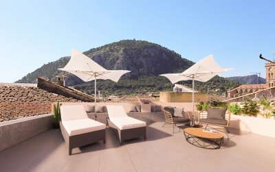 MODERNISIERT & RENOVIERTES Stadthaus in Pollensa. 3 Etagen, Patio mit kleinem Pool, Terrasse im OG und Dachterrasse