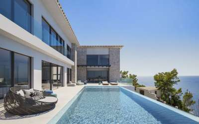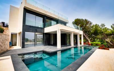 COSTA D'EN BLANES, in den Hügeln oberhalb von Puerto Portals. Moderne Luxusvilla über 3 Ebenen mit fantastischem Panorama- und Meerblick zu verka...