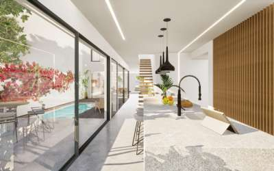 ERSTBEZUG! Neubau Dorfhaus in Ses Salines mit Pool, Garage, Fussbodenheizung, Klimaanlage, Südausrichtung, Dachterrasse & MEERBLICK