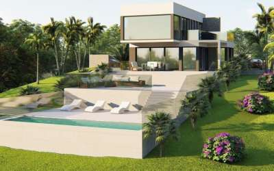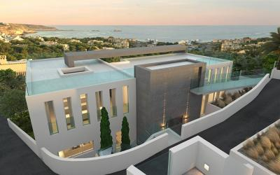 COSTA D'EN BLANES, in den Hügeln oberhalb von Puerto Portals. Moderne Luxusvilla über 3 Ebenen mit fantastischem Panorama- und Meerblick zu verka...