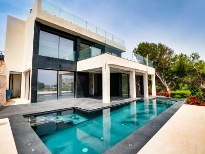 Moderne Villa in Cala Murada zu verkaufen! Die neu gebaute Villa liegt absolut ruhig in 1. Meereslinie mit traumhaftem Blick auf das Meer und den Strand der Cala Domingos. Das Grundstück in Südausrichtung hat eine Größe von ca. 3200 m² und ist zum Meer hin leicht abfallend. Das in den Hang gebaute Haus bietet auf zwei Etagen zzgl. Dachterrasse eine Wohnfläche von ca. 385 m² mit insgesamt 5 Schlafzimmern, alle mit Bädern en Suite und ein Gäste Bad. Auf der Eingangsebene, welche auch die Wohnebene ist, befindet sich die große, spektakuläre und voll ausgestattete Küche mit besten Marken-Elektrogeräten, das grosse Wohn-Esszimmer, ein Schlafzimmer mit Bad en Suite und Terrasse und ein Gäste Badezimmer. Auf der unteren Ebene, der Poolebene, befinden sich 3 weitere Schlafzimmer, jeweils mit Bädern en-Suite und alle mit begehbaren Kleiderschränken. Das Hauptschlafzimmer bietet zusätzlich eine Vorinstallation für eine Sauna. Alle Schlafzimmer haben direkten Zugang zur Poolterasse mit Jacuzzi. Der Poolbereich bietet zusätzliche eine Nassbereich mit Duschen und Toilette. Die Dachterrasse hat eine große Pergola als Sonnenschutz. Zur weiteren Ausstattung gehören: Fussbodenheizung und Klimaanlage, Wärmepumpe, Isolierverglasung, bodentiefe Fenster, voll ausgestattete Küche, Aufzug, Telefon, Internet und TV-Anschluss.