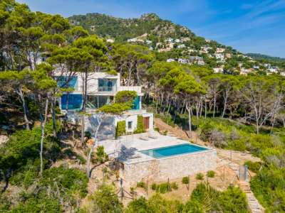 Mallorca, Villa in Canyamel zu verkaufen! Das moderne und helle Einfamilienhaus liegt absolut ruhig in 1. Meereslinie in Südausrichtung. Das Grundstück in leichter Hanglage hat ca. 1.245 m² und einen eigenen Zugang zum Meer.