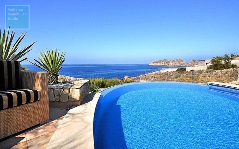Die Villa in Santa Ponsa wurde 2009 auf einem Grundstück in erster Meereslinie fertiggestellt. Die Wohnfläche von insgesamt 430 m² verteilt sich auf zwei Etagen und bietet: Küche, Wohn -/ Esszimmer, gemütliche Kaminecke, 5 Schlafzimmer, 4 Bäder und ein Gästeapartment. Von allen Zimmern hat man einen traumhaften Meerblick. Der großzügige Außenbereich bietet mehrere Terrassen, Überlaufpool und einen Patio. Zur Ausstattung gehören weiterhin: Klimaanlage w/k, Kamin, großer Essbereich, Luxusküche, Hauswirtschaftsraum, Bodega, doppeltverglaste Holzfenster, Garage und automatische Bewässerung.
