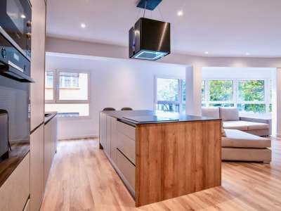 Apartment for sale in Palma de Mallorca. This elegant city apartment is located close to the beautiful old town of Mallorca's capital. The apartment offer a total of 3 bedrooms and 2 bathrooms, one of which is en suite and a living area of approximately 145 m². The apartment has a wide window front, shedding plenty of natural light into the open-plan living/dining area with open kitchen. The kitchen is fully equipped and has a cooking island, which underlines the modern design. The apartment offers 3 ample bedrooms. The master bedroom has a bathroom en-suite with a free-standing bathtub, which is optically separated from the bedroom by a floor-to-ceiling glass element. All bedrooms have large built-in wardrobes. Further features include: air-conditioning, double-glazed windows, parquet floors, fully fitted kitchen, landline, internet and television. A parking space in the underground garage of this house is available for rent.