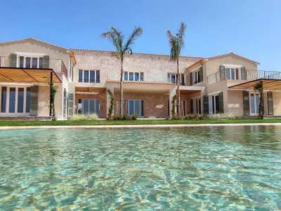 Finca for sale! The new country house (2023) is situated in an absolutely quiet location between Campos and the Es Trenc beach facing south on a plot of approx. 30,000 m². The house offers a total of 5 bedrooms and 5 bathrooms en suite on 2 floors. The finca is equipped with underfloor heating and air conditioning.