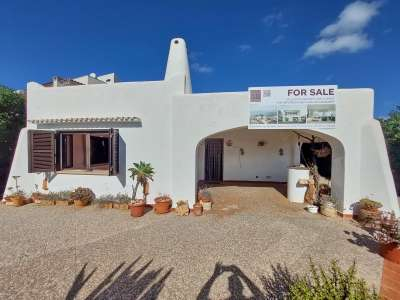 House with sea views for sale! This detached house is situated in a prime location in the first sea line with unobstructed sea views at Cala Mondrago in the natural park of the same name. The Ibizan-style house stands on a plot of approx. 421 m² and offers a constructed area of approx. 155 m² with a total of 3 bedrooms and 2 bathrooms, a spacious living and dining room and a functional kitchen. Although in need of renovation, this house is a blank canvas waiting for your creativity. There is the possibility to extend the house by a 1st floor and thus create a dream house with sea views in 1st sea line and lots of space. Outside there is a covered terrace of approx. 20 m² with a summer kitchen, BBQ, a stone oven and a pool. The garden is low-maintenance Mediterranean. From the roof terrace and the upper floor you have a marvellous view of the sea and the coast. Further features include: Public electricity and water connection, air conditioning, single glazing, summer kitchen with BBQ and stone oven, pool, roof terrace and garage. Telephone, internet and TV connection are available.