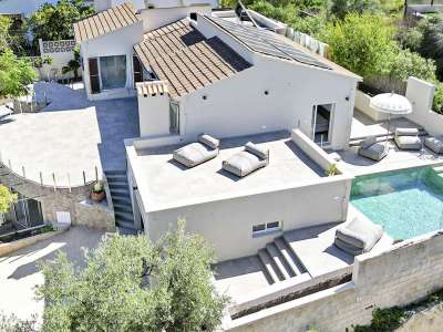 Modernised village house. The front of the house faces north-east, with a south-facing pool terrace and pool. Quiet residential area, only approx. 50 metres from the harbour, beach and promenade.