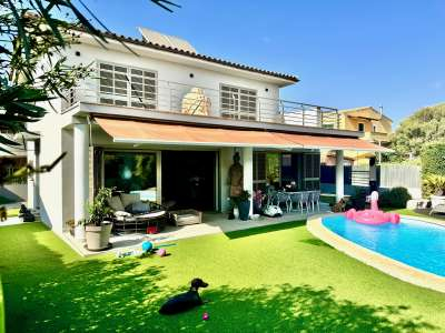 Sa Torre, detached house for sale! This very well-kept, modern chalet with garden and pool is located in the village on a plot of approx. 450 m² and was built in 2005. The house offers a living space of approx. 199 m² on two floors with a total of 3 bedrooms and 2 bathrooms. On the GROUND FLOOR there is a guest bathroom, the bright living/dining room with direct access via large sliding windows to the terrace and the garden with pool and lounge area. The adjoining, fully equipped kitchen with cooking island including a teppanyaki grill also has direct access to the pool terrace and the garden. There is direct access to the house from the garage. On the UPPER FLOOR there is a bathroom, the three bedrooms, two of which have direct access to an approx. 30 m² south-facing terrace with views of the neighbourhood and the green areas of the urbanisation. The mature garden is easy to maintain. In addition to the garage, there is a covered carport. Further features include: mains electricity and water, air conditioning, double glazing, modern and fully equipped kitchen with utility room, garage and carport, garden, pool, telephone, internet and TV connection. The detached house for sale in Sa Torre is offered partially furnished.