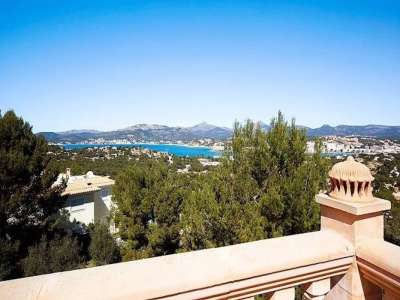 Sea view villa in a coveted residential area in Santa Ponsa. On a plot of 950 m² with a total area of 350 m², are available 4 bedrooms with bathrooms en suite, 1 guest toilet and a bright living / dining room and a large fitted kitchen. In the basement room for three cars is offered. A sauna with Shower room, a wine cellar and a roof terrace with a spectacular view of the Bay of Santa Ponsa complete this offer. Extras: air conditioning h / c, automatic watering, fitted wardrobes, fitted kitchen, double glazed windows, fireplace, garage, marble floors, Storage room, swimming pool, garden.