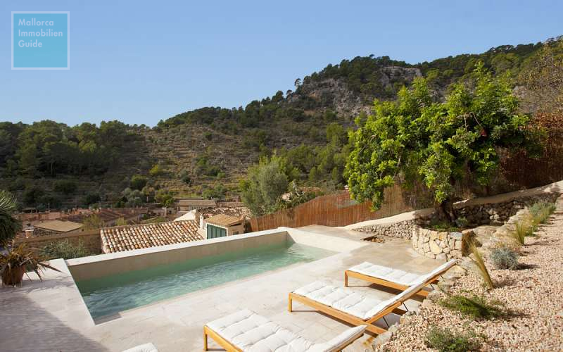 Renovated village house for sale in Caimari! The terraced plot with views of the village is at the borders of the village and has a size of about 561 m². Fully renovated in 2022, the village house offers about 230 m² on two floors and has 3 bedrooms and 3 bathrooms. Ground floor distribution: Living room, sunny and modern, fully fitted kitchen with access to the backyard and one bedroom with bathroom en-suite. First floor distribution: 2 bedrooms with their bathrooms en-suite. Both are ample and have an outside staircase to reach the backyard. Outside the property is terraced, descending to the pool and the pool terrace. In between there are bushes and greens and places to relax and enjoy the views. Further features include: Double-glazed windows, fireplace, air-conditioning, quality floors, and a modern and fully fitted kitchen.
