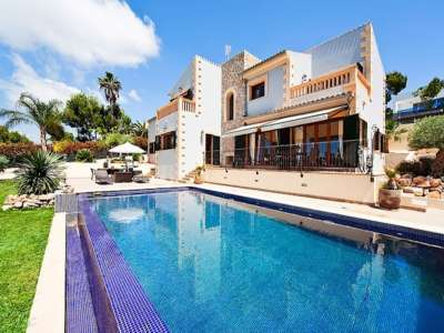 Built in 2008, this Villa is located on a plot of 1,400 m² in Cala Vinyas. The living space of 320 m² is divided as follows: 4 bedrooms, 3 bathrooms (one en suite), a bright living room with fireplace, a spacious, fully equipped kitchen and a separate utility room. An additional bedroom can be converted from the currently occupied as an office space as required. A beautiful garden and an idyllic pool area complete the offer. Other features include: High-quality PVC windows, air conditioning hot / cold, automatic irrigation system, fireplace, fitted wardrobes, garden, laundry room, oil central heating, satellite TV, tiled floor, double garage, cellar.